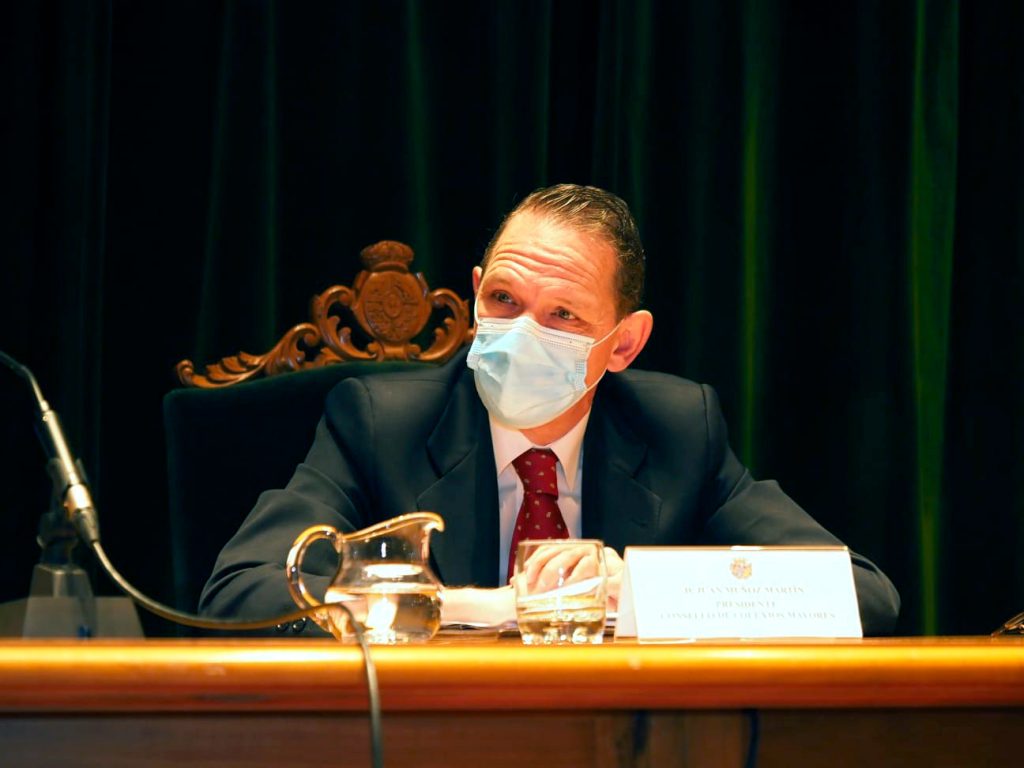 Tras un buen chocolate con churros, asistíamos al Salón de Fonseca donde se daban por inauguradas las Jornadas de Colegios Mayores de 2022 impartida por D.Emilio Ontiveros Baeza, analista económico y financiero de prestigio que fue el encargado de sentar las bases sobre la temática de las Jornadas de Colegios Mayores Universitarios 2022..